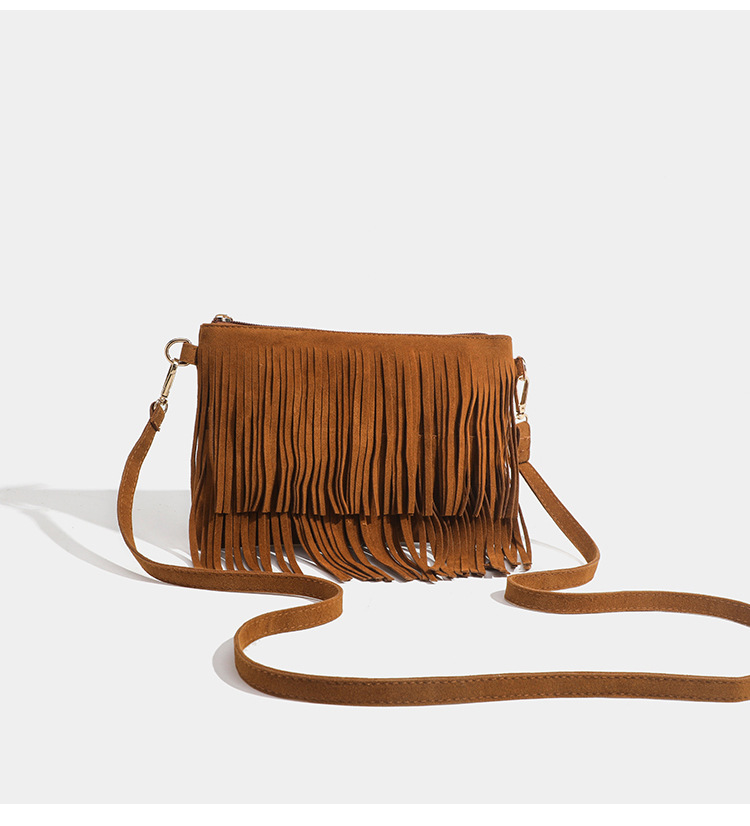 spring and summer cross-border bag with a fashionable retro saddle design. Features a matte finish and tassel accents, perfect as a versatile messenger bag for casual or trendy looks.