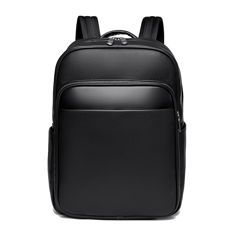 High quality business backpack men's commuting casual fashion men's bag large capacity solid color computer bag leather backpack tide